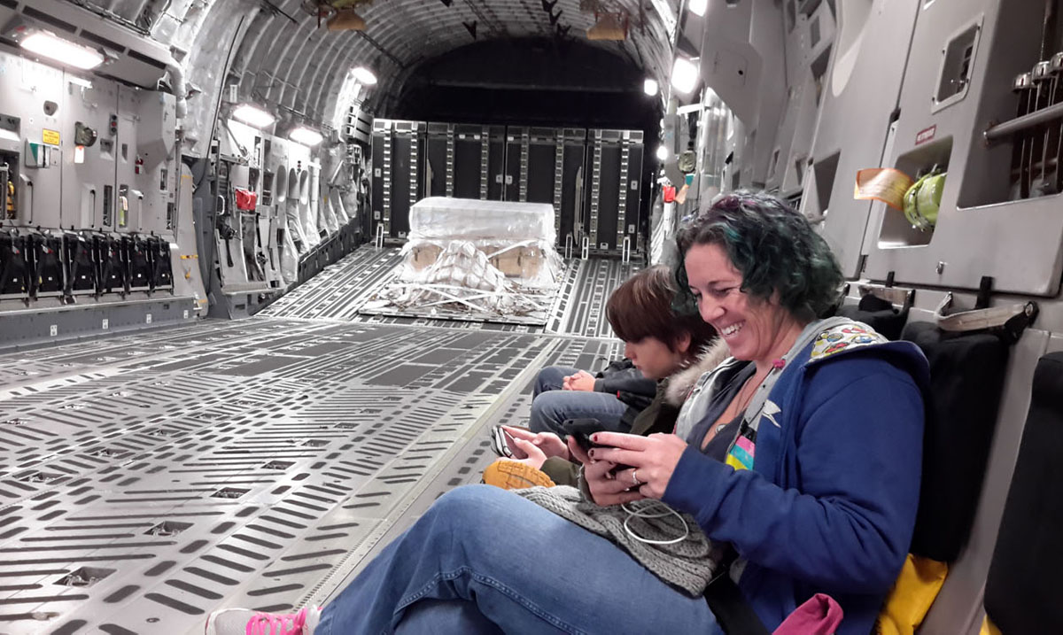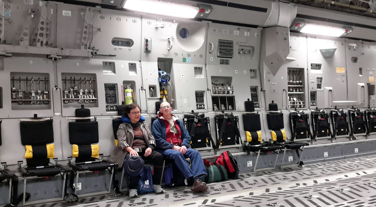 Leaving Travis AFB, CA, to Yokota AB, Japan, on an uncrowded C-5 cargo aircraft and arrived 12 hours later. |
