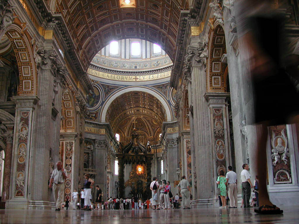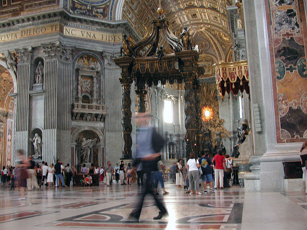 Inside the cavernous St. Peter's Basilica with a view of Bernini's fabulous altar |