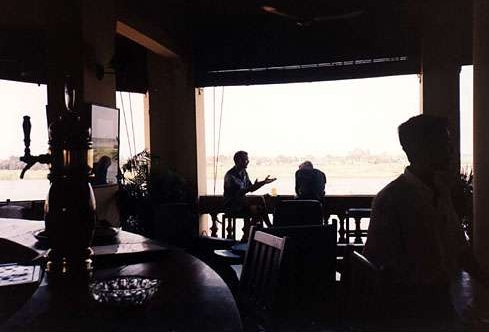 of an French colonial building in Phnom Penh, overlooking the Mekong River.