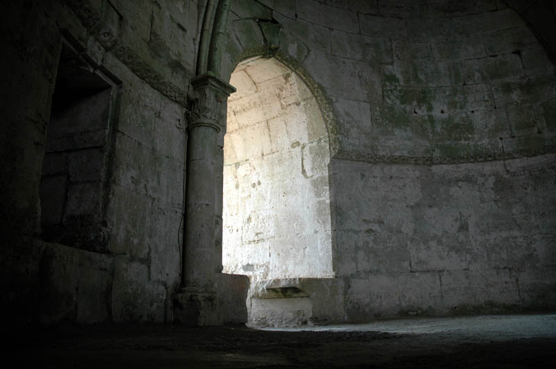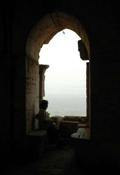 High up in a tower of the innermost structure, the chambers of the lord of the castle, with ornate wall and ceiling decoration and an alcove with two carved benches to sit and look out over the countryside. |