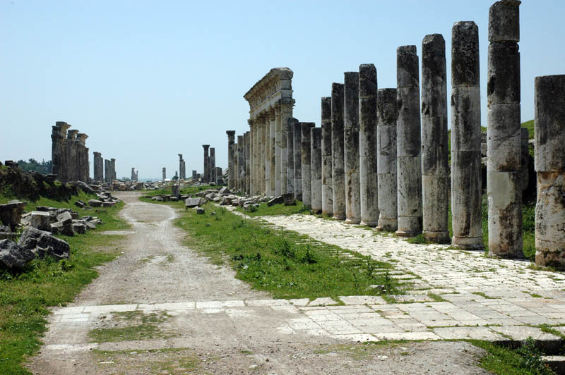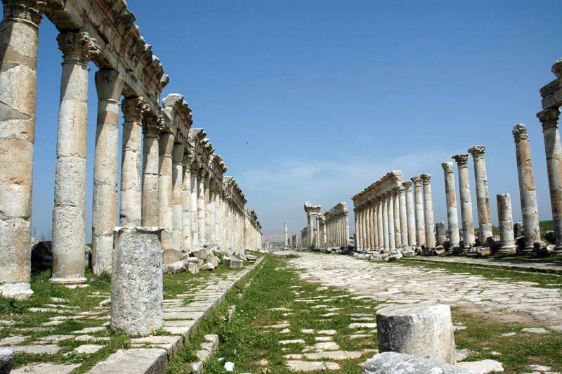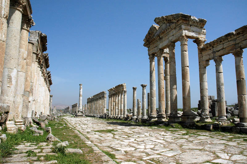 | This spectacular place, also at times pronounced 'Afamea',was a grand market site where caravans from all over the region would come and bring their wares. Merchants had shops behind and between these columns, which were connected by canvas to shade the shoppers from the sun. . |