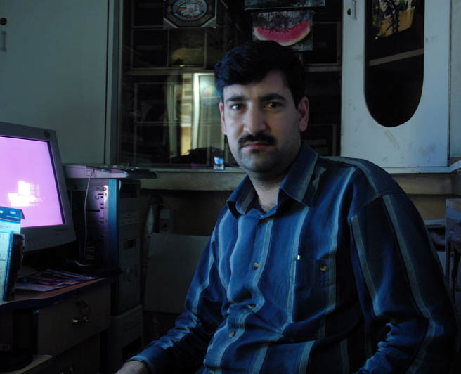 The local computer geek, a very friendly and helpful guy, who saved all of my Middle East pictures to CDs. He is located in back of a photo studio, near my hotel (Hotel Riad) |