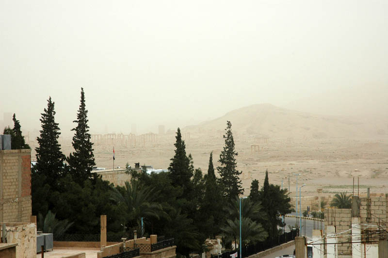The next morning the weather had changed, and a huge sandstorm raged. Visited the museum & I then and lef. You can just see the excavated and restored lion from the entrance of the museum at the bottom center of the picture |