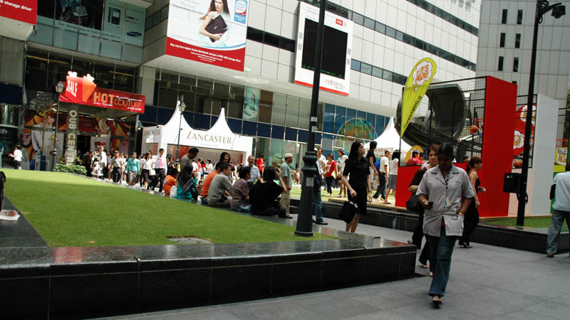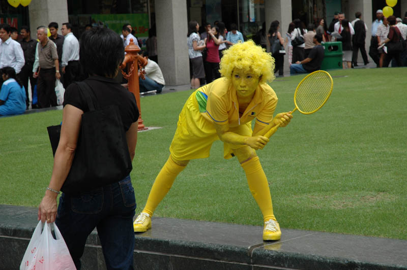 Lunch time and lunch time entertainment. Mimes, don't mess with this one, she's got a racket |