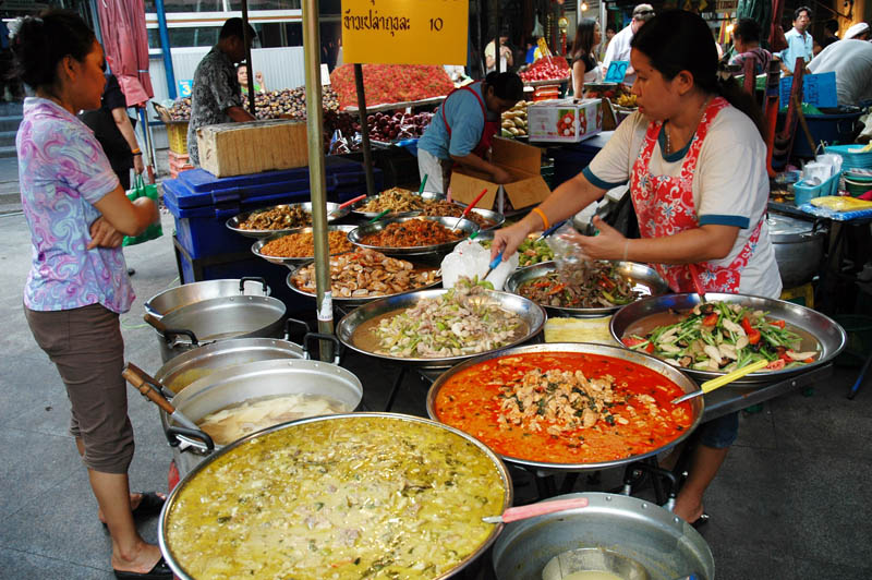 Delicious Street Food - Just one of many. Who would want to cook when this is virually everywhere? Fresh Fruit can be bought in the surrounding market. This one is near Pier 9 & Wat Phra Kheo |