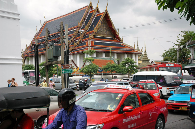 Holiday Weekend Traffic Near Wat Po (in background) & Wat Phra Kheo |