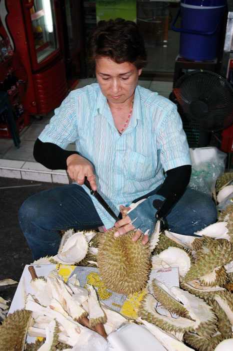 This woman's hands were actually physically changed from a lifetime of handling and opening this fruit. Also, she was the single biggest money maker at the market. She was selling this stuff non-stop. |