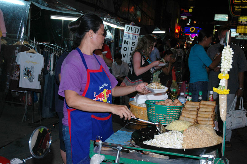 Kheo San Road by night (and my little mobile restaurant) |