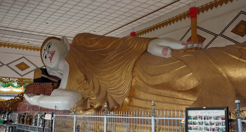 Shwe-tha-lyaung Reclining Buddha Built in 994, restored several times since