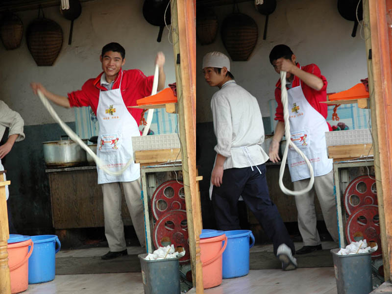 Noodle Pulling at its Finest (this is my batch, and they were totally delicious) |