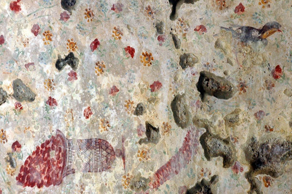 paintings in a nearby necropolis that show birds, flowers, and vases.