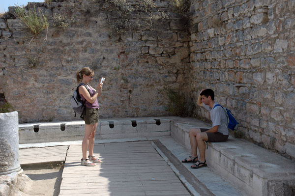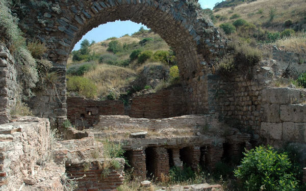 | Crawling through some narrow holes and passages I arrived here, a closed area that clearly shows the heated floor of whatever the great arched hall was. |