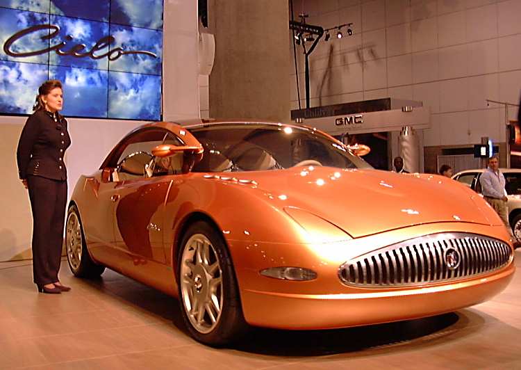 The Buick Cielo (Sky) One of the most beautiful concept cars at the show. It can seat four in great comfort (five, if necessary) and has an automatically retracting roof. The panels and rear window slide aft and stack in the trank space, still leaving sufficient space for (I heard a minimum of two golf bags plus some space to spare) luggage. When open, the only thing left are the two longitudinal curved beams on the edge of the roof. It is a four-door, with the rear doors opening to the back, affording great ease of entry for all passengers. The concept car was equipped a voice command system. I saw that in operation, and while I never warmed up to the idea of voice operated computers in public spaces (just imagine the chatter, or the chance for interference), I didn't like it any better here. At this Cielo website you can see additional photos and descriptions of this impressive concept car.