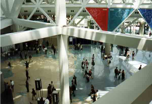 | While the Expo itself took place in the South Hall, the West Hall, connected by a concourse where an art show of computer generated art was displayed, the South Hall was the place for the hands-on computer studio, presentations, papers, classes etc. |