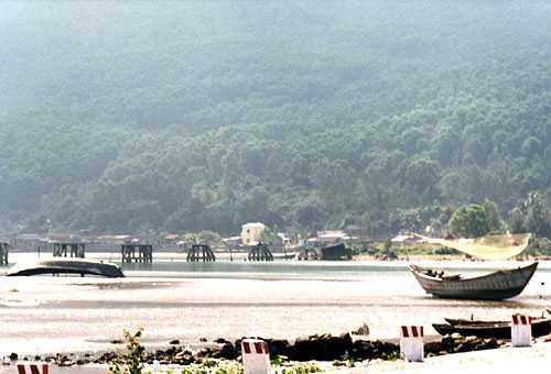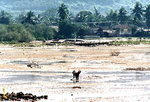 The bay side of Lang Co at low tide. Some villagers not only cross it as a rather wet short cut to Lang Co, but also dig for sea life.