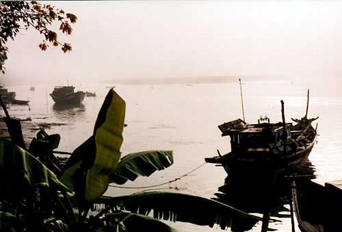View from Huy Hoang's terrace, early in the morning, when one can watch the peasants bringing their goods to the market by boat.