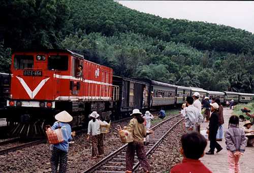 At Lang Co village railway station. This local train is leaving for Danang 0800 every morning.